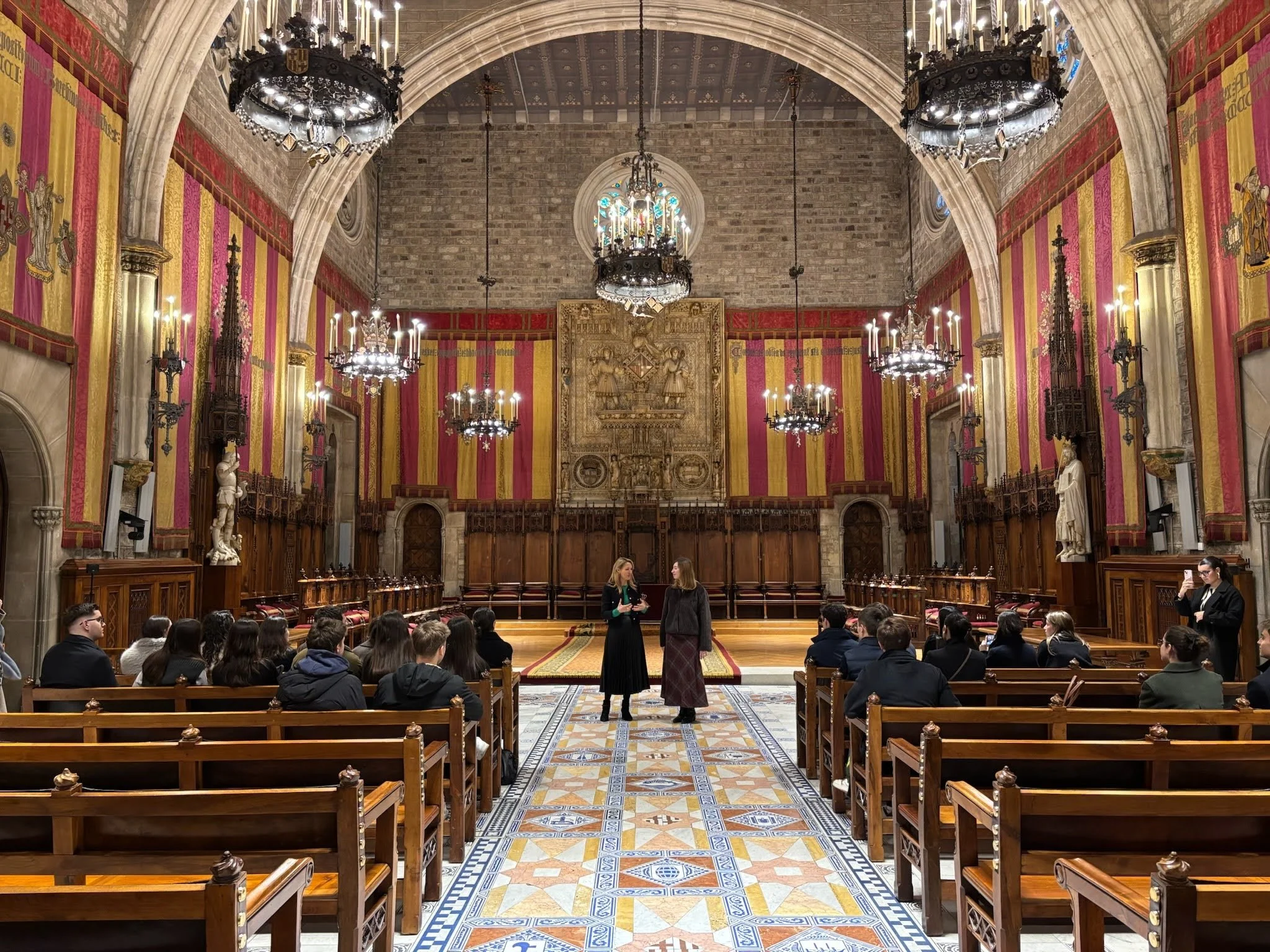Els nostres socis van tenir l’oportunitat de viure una experiència única amb una visita guiada a l’interior de l’Ajuntament de Barcelona, combinada amb una xerrada de l’actual Tinenta d’Alcalde, Maria Eugènia Gay. Durant el recorregut, vam poder descobrir espais emblemàtics com el Saló de Cent (Saló de Plens), el Saló de Cròniques i l’escala d’honor, aprenent els detalls històrics que caracteritzen cadascun d’aquests llocs i entenent el seu funcionament i propòsit en l’organització del govern municipal.